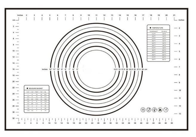 Details: Features: Lays perfectly flat on your counter top Non-stick, flexible silicone Includes measurements and temperature conversions Easily roll up for storage Dishwasher safe Release bread easily without the need for extra